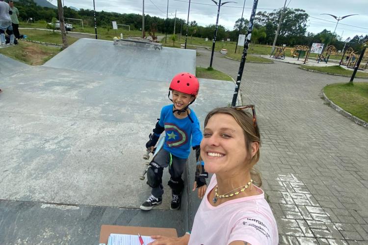 Professora de skate com 8 anos de experiência, instrutora de yoga e educadora física em formação. Formada como instrutora de skate pela Federação Paulista.