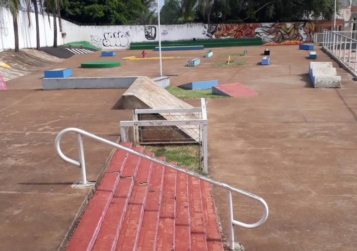 O piso aparenta ser plano nas áreas de rolê, com inclinações suaves perto dos obstáculos para dar embalo. As bordas ou aletas de transição entre os obstáculos parecem bem definidas, sem muita ondulação visível em fotos mais antigas, sugerindo manutenção decente.