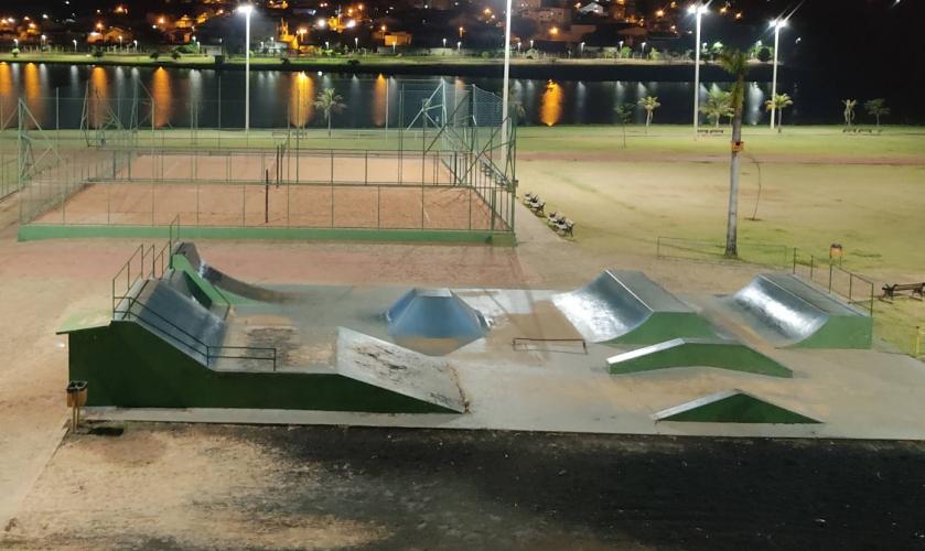 O piso da pista de skate é provavelmente concreto ou similar resistente, adequado para prática de skate, patins e esportes radicais; embora eu não tenha achado documento confirmando cada obstáculo presente, o fato de edificarem tudo do zero e redesenharem o projeto sugere acabamento caprichado, bom nivelamento, drenagem razoável, e obstáculos integrados ao espaço urbano de lazer, permitindo rolês fluídos.