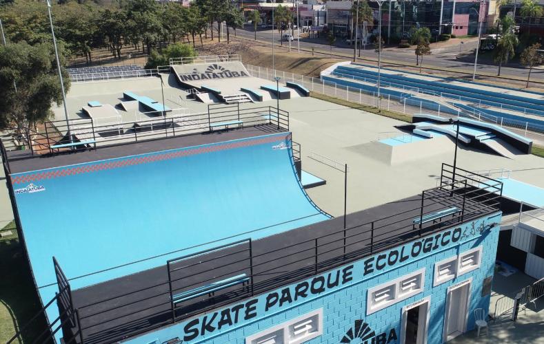 Localizada dentro do Parque Ecológico de Indaiatuba, na Av. Eng. Fábio Roberto Barnabé, a pista de skate é uma das mais conhecidas da cidade e serve como ponto de encontro de skatistas de vários níveis. O espaço é amplo e conta com estrutura de street e transições suaves, composta por corrimões, rampas, quarters, caixotes e banks bem distribuídos sobre piso de concreto liso, ideal para manobras técnicas e de velocidade. A pista tem boa drenagem e é bem iluminada à noite, permitindo sessões após o pôr do sol. O entorno é arborizado, com vista para o lago do parque e ciclovia passando próxima, criando um ambiente agradável e seguro. Há bancos, áreas gramadas, estacionamentos e quiosques nas redondezas, além de uma movimentada área de lazer usada por famílias e esportistas. A integração com o parque torna o local um ponto vibrante de convivência urbana, com fluxo constante de pedestres, ciclistas e praticantes de esportes ao ar livre.