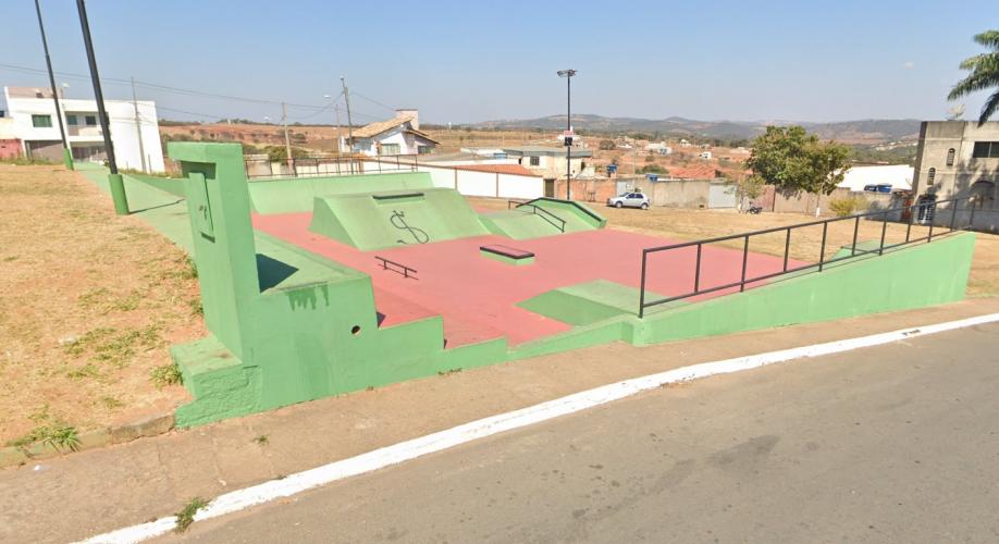 A pista de skate da Praça Antônio da Chica em Pitangui-MG, na Rua Velho do Taipa, nº 478, é um equipamento urbano comunitário visivelmente simples, com obstáculos básicos — como plataformas baixas ou caixotes de concreto, possivelmente bordas ou bancos retos para grinds e slides — adequado para sessões de rua e prática amadora de skate. O piso parece de cimento ou concreto comum, sem estrutura de competição avançada; nota-se certa deterioração e falta de manutenção em partes, sugerida por descrição de usuários (“um pouco descuidado pelos órgãos públicos”).