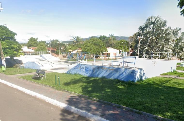 A pista de skate no Setor Aeroporto, Av. Catarina de Abreu Silva, em Aragarças-GO, situa-se em área urbana relativamente aberta, provavelmente próxima de residências simples, vias asfaltadas, com bom acesso local. O piso deve ser de concreto, nivelado, voltado ao street skate, com obstáculos básicos — caixotes, plataformas baixas, bordas, talvez corrimões simples — que permitam manobras urbanas recreativas. O espaço é aberto, sem cobertura significativa, de modo que o sol incide diretamente durante parte do dia e chuva implicaria interrupções; sombra parcial possivelmente fornecida por árvores próximas ou construções vizinhas.